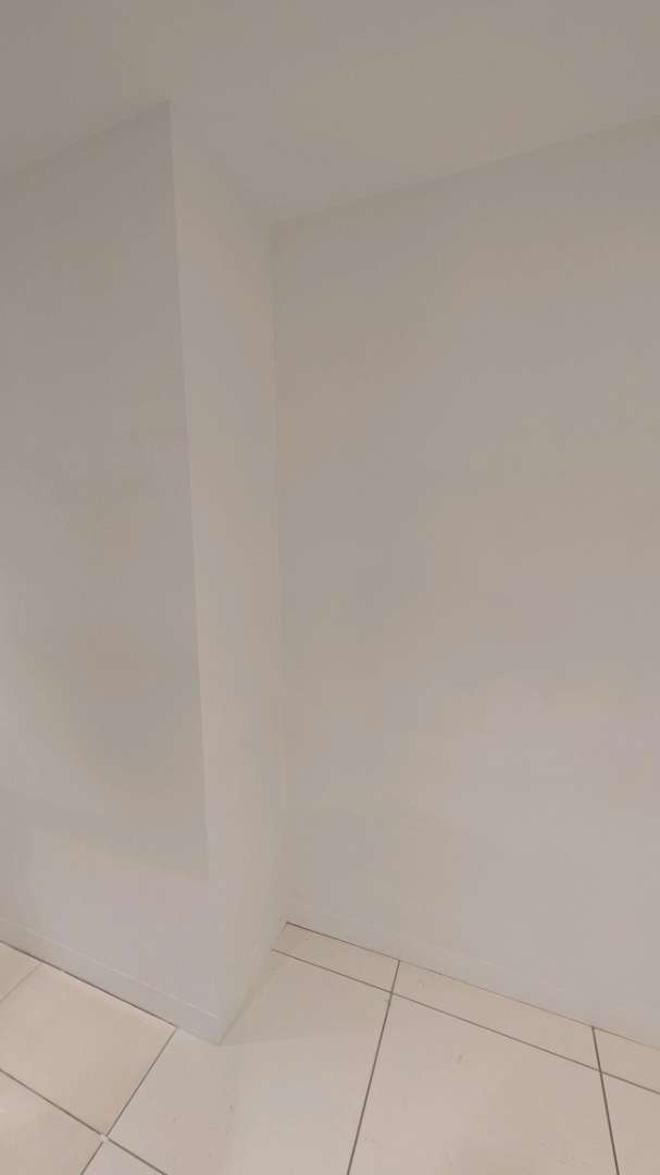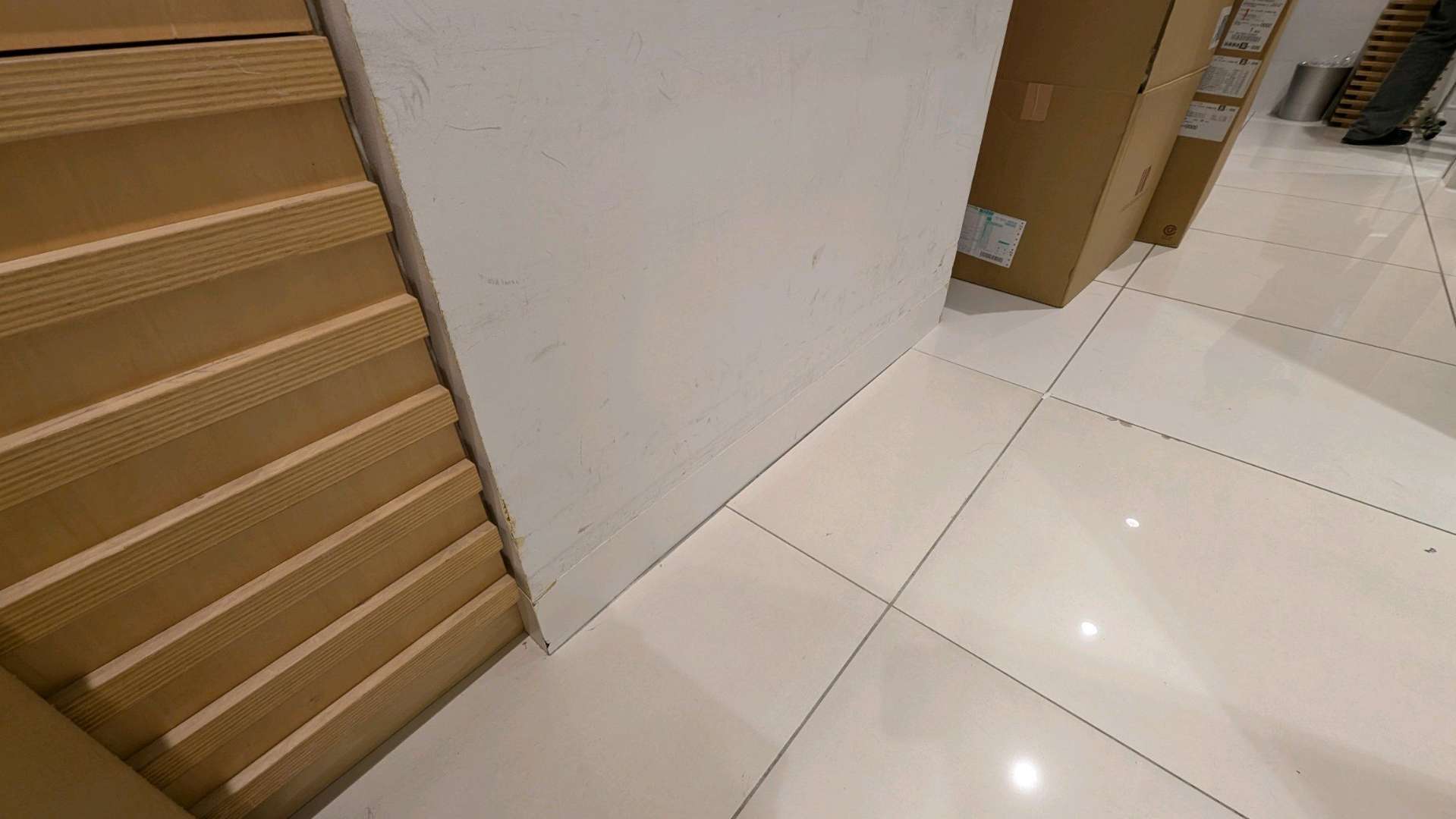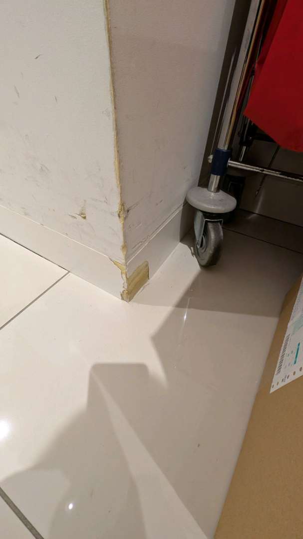 純白なので写真で見えにくいかもしれませんが、黒ずんだ汚れを全て消し真っ白になっています。巾木の割れたヶ所も目立たないように白く塗装しております。